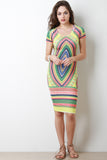 This boho tribal kaleidoscope print throughout, scoop neckline, short sleeves design, and stretchy sculpture fit. Accessories sold separately. Made in U.S.A. 95% Polyester, 5% Spandex.