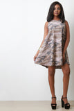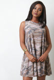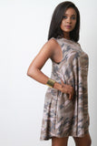 This casual dress features a knit fabrication, sleeveless design, round neckline, with an a-line cut. Accessories sold separately. Made in U.S.A. 60% Polyester, 36% Rayon, 4% Spandex.
