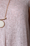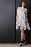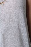 This dress features a rounded neckline, loose heather knit fabrication, shift dress silhouette, asymmetrical cut hemline, with raw unfinished hems. Accessories sold separately. Made in U.S.A. 60% Rayon, 40% Polyester.
