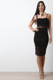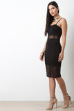 This chic dress features contrasting mesh panels on midsection and hemline, ribbing details, spaghetti straps and exposed rear zipper closure. Accessories sold separately. 95% Polyester, 5% Spandex.
