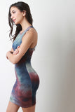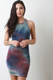 This hot mini dress features a soft knit fabrication, tie dye coloring , full lining, round neckline, sleeveless design, curve hugging bodycon fit and a mini length hemline. Accessories sold separately. Made in U.S.A. 95% Rayon, 5% Spandex.