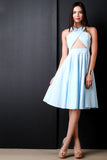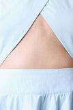 This beautiful dress features a crisscross v-neckline and front band covers, front and back triangle keyhole detail, and flare skirt. Finished with a lining. rear zip-up closures and midi length hemline. Accessories sold separately. 100% Cotton.