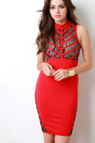 This eye-catching dress features soft stretchy knit fabrication, contrasting lace design at top front and bottom sides, and mock neckline. Finished with a midi-length hemline and hidden rear zip-up closure. Accessories sold separately. 68% Cotton, 27% Polyester, 5% Elastane.