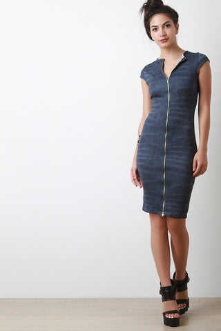 Mesh Contrast Short Bell Sleeve Bodycon Midi Dress