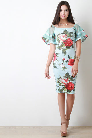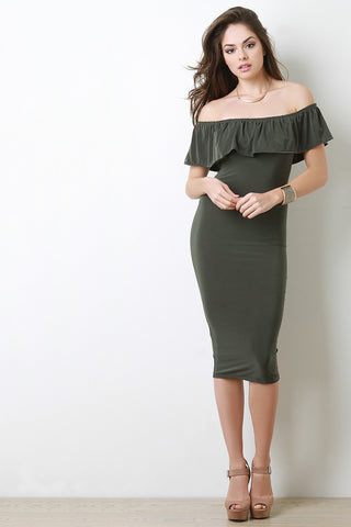 Off-The-Shoulder Ruffle Bodycon Midi Dress