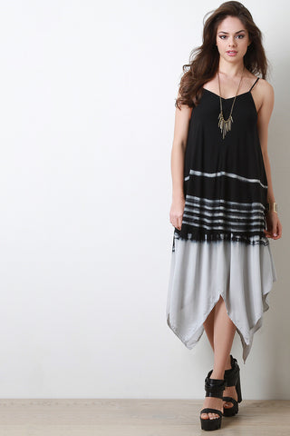 Striped Tie Dye Handkerchief Hem Maxi Dress