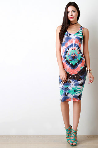 Tie Dye Scoop Neck Sleeveless Midi Dress