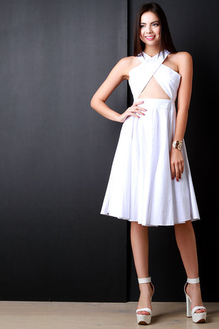 Crisscross Band Cover Keyhole Skater Dress