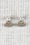 These jacket earrings feature a faux pearl stud and rhinestone-embellished leafy branch jacket.