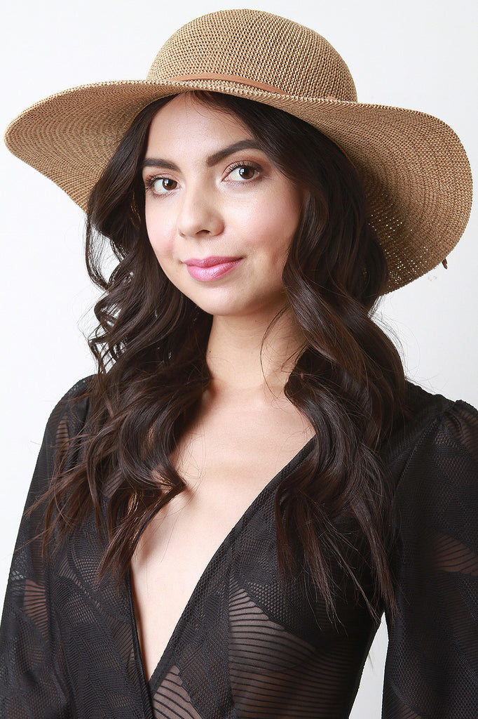 This hat features straw material, 2 faux suede string with bow design, and wide floppy brim.