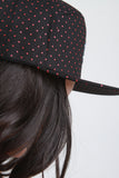 This trendy snapback cap features a polka dot print with California bear patch sewn on, five panel design, and flat bill.