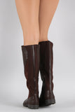 These knee high boots feature a round toe silhouette, elasticized panels for an adjustable fit, stitching accents, and block heel. Finished with cushioned insole, soft faux fur interior lining, and full-length side zipper closure for easy on/off.