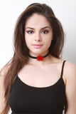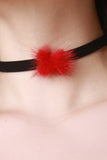 This trendy choker features vegan suede band, single fuzzy pom, and adjustable lobster hook closure.