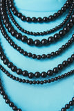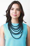 This bold statement necklace features multiple layered strands of round beads and adjustable lobster hook closure. Finished with matching earrings.