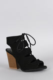 This lace up closure, chunky stacked heel, and lightly padded insole for comfort.