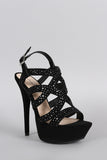 This dazzling  heel  features an open toe silhouette, strappy construction with rhinestones accent, and stiletto heel. Finished with lightly padded insole and adjustable slingback strap with buckle fastening.