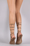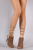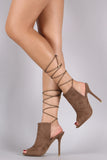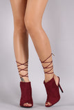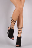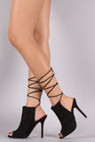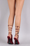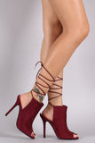 This amazing heel features a peep toe silhouette, slip-on construction with ankle tie closure, and stiletto heel. Finished with lightly padded insole for comfort.