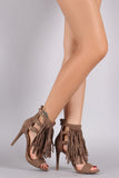 This chic fringe decor, and wrapped stiletto heel. Finished with lightly padded insole and back zipper closure for easy on/off.