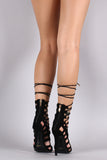 This stylish  lace up  design, wrapped stiletto heel, lightly padded insole, and rear zipper closure for easy on/off.