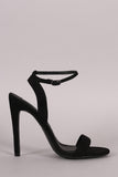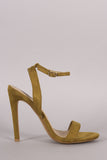 This fabulous vegan suede  heel  features a single strap across vamp and a sling back strap with adjustable belt. Finished with a lightly cushioned insole for more comfort.