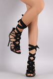 This gorgeous lace up design, low platform, and wrapped stiletto heel. Finished with lightly padded insole and convenient back-zip closure.