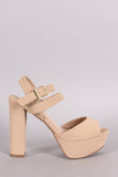 This sophisticated heel features a double strap, one band, open toe silhoutte, wrapped platform, and chunky heel. Finished with a lightly padded insole for comfort and adjustable strap with buckle fastening.