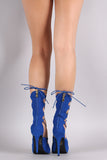 This show-stopping lace-up front, and wrapped stiletto heel. Finished with a lightly padded insole and back-zip closure.