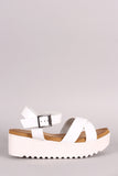 This flatform , featuring a cushioned sole. Classic two crossing straps at toe box with an adjustable ankle strap.