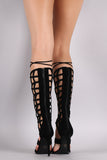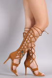 This stylish lace up design, wrapped stiletto heel, lightly padded insole, and rear zipper closure.