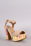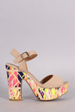 This fashionable heel features an open toe silhouette and watercolor print chunky platform heel. Finished with a lightly padded insole and adjustable ankle strap with side buckle fastening.