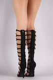 This striking lace-up closure, single sole, and wrapped stiletto heel. Finished with a lightly padded insole and back zipper closure.