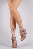 This fashionable mule lace up closure, lightly padded insole, and wrapped stiletto heel.