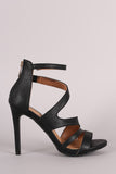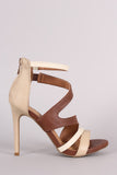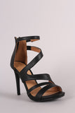 This impressive open toe heel features an asymmetrical strappy design vamp, stitching accents, and wrapped stiletto heel. Finished with lightly padded insole and rear zipper closure for easy on/off.