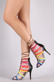 These fashionable lace-up front, and wrapped stiletto heel. Finished with a lightly padded insole and rear zipper closure for easy on/off.