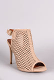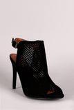 This simply chic heel features a peep toe silhouette, perforated-designed vamp, slingback with side buckle closure, and wrapped stiletto heel. Finished with a lightly padded insole for comfort.
