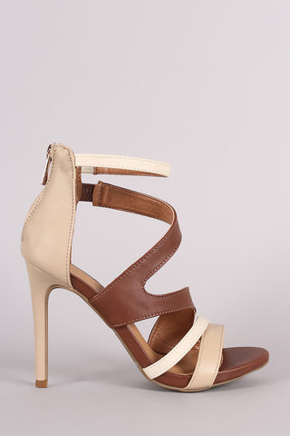 Anne Michelle Strappy Slanted Peep Toe Stiletto Heel