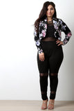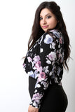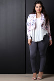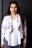This jacket features a quilted fabrication, floral print design, longsleeves fit, open front, and finished with a wide collar with zipper lining. Accessories sold separately. Made in U.S.A. 95% Polyester, 5% Spandex.