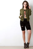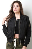 This stylish bomber jacket features a windbreaker fabrication, contrasting ribbed knit trim, left sleeve utility pocket, and front zip-up closure. Finished with two front pockets with snap button closures. Accessories sold separately. Self: 100% Polyester, Lining: 100% Polyester.