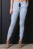 These vegan suede fabrication, elastic waistband with faux drawstring, side pockets, and banded cuff. Accessories sold separately. Made in U.S.A. 95% Polyester, 5% Spandex.