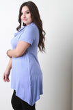 This casual  plus size top  features a turtleneck, short sleeves design, and finished with asymmetrical sharkbite hemline. Made in U.S.A. 95% Rayon, 5% Spandex.