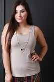 This  plus size top  features soft rib knit, u-neckline, sleeveless construction, and cut out design. Accessories sold separately. Made in U.S.A. 96% Rayon, 4% Spandex.
