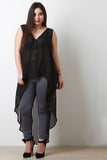 This  stripe  fabrication, v-neck, sleeveless construction, button up front, and finished with high low hemline. Accessories sold separately. 100% Polyester.