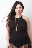 This plus size sleeveless top features a jersey knit fabrication, cutaway design, spaghetti shoulder straps, and racer back. Accessories sold separately. Made in U.S.A. 95% Cotton, 5% Spandex.
