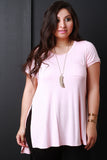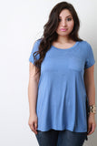 This plus size top features a soft knit fabrication, front chest pocket detail, scoop neckline, high love hem with high side slits. Accessories sold separately. 97% Rayon, 3%Spandex.