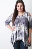 This cute plus size top features a jersey knit fabrication, scoop neckline, cold shoulder design, and elbow length sleeves. Finished with a sharkbite hemline. Accessories sold separately. Made in U.S.A. 97% Rayon, 3% Spandex.