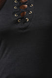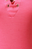 This sleeveless plus size dress features a mock neck, keyhole back with button closure, metallic grommets with corset-style lace-up design at front, and stretchy sculpture fit. Accessories sold separately. Made in U.S.A. 95% Polyester, 5% Spandex.
