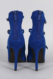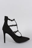 This stunning pointy toe , cage-like silhouette with buckles accent, single sole, and stiletto heel. Finished with lightly padded insole and rear zipper closure for easy on/off.