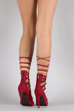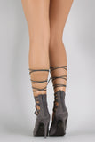 A trendy pointy toe and wrapped stiletto heel. Finished with back zipper closure and lightly padded insole.