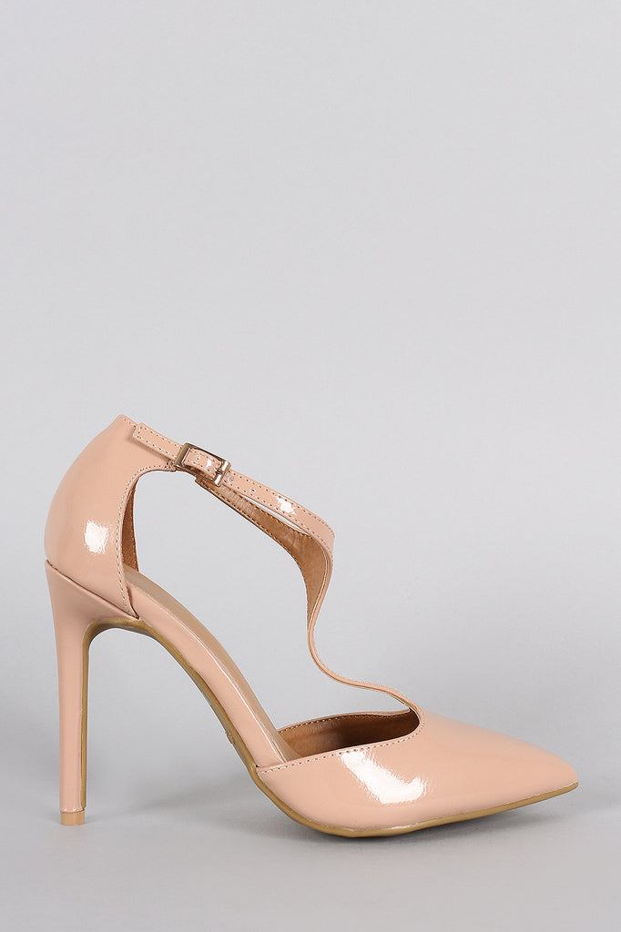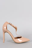 This ladylike pump features a pointy toe front, enclosed back with stiletto heel, and narrow t-strap construction with elastic gusset and adjustable buckle closure. Finished with a lightly padded insole.