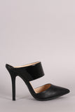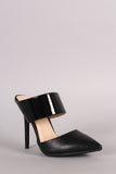 This elegant pump features a combination of sleek patent/vegan leather upper, pointy toe silhouette, lightly cushioned insole, and wrapped stiletto heel.